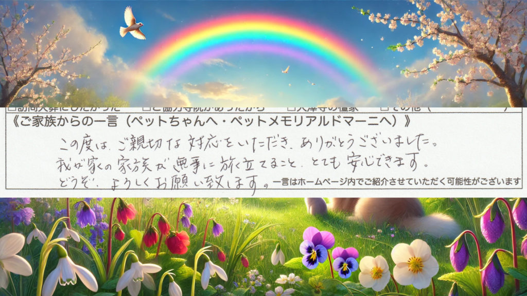 このたびは吉田町のペット訪問火葬 ペットメモリアル ドマーニをご利用いただきありがとうございました。