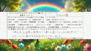 静岡県浜松市のペット訪問火葬 ペットメモリアル ドマーニをご利用いただき、誠にありがとうございました。