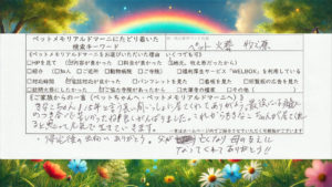 かなり名前の知られた施設とのことでしたが、今回は初めてペットメモリアル ドマーニをご利用くださいました。