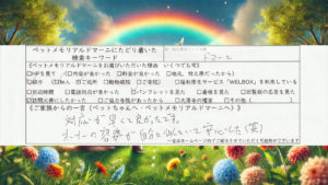 収骨の最中、ご家族様から「この子にこれだけのことをしてあげられて、よかったです」と声を掛けていただきました。こちらとしては、その一言をいただければ十分だと思えるくらいの言葉です。